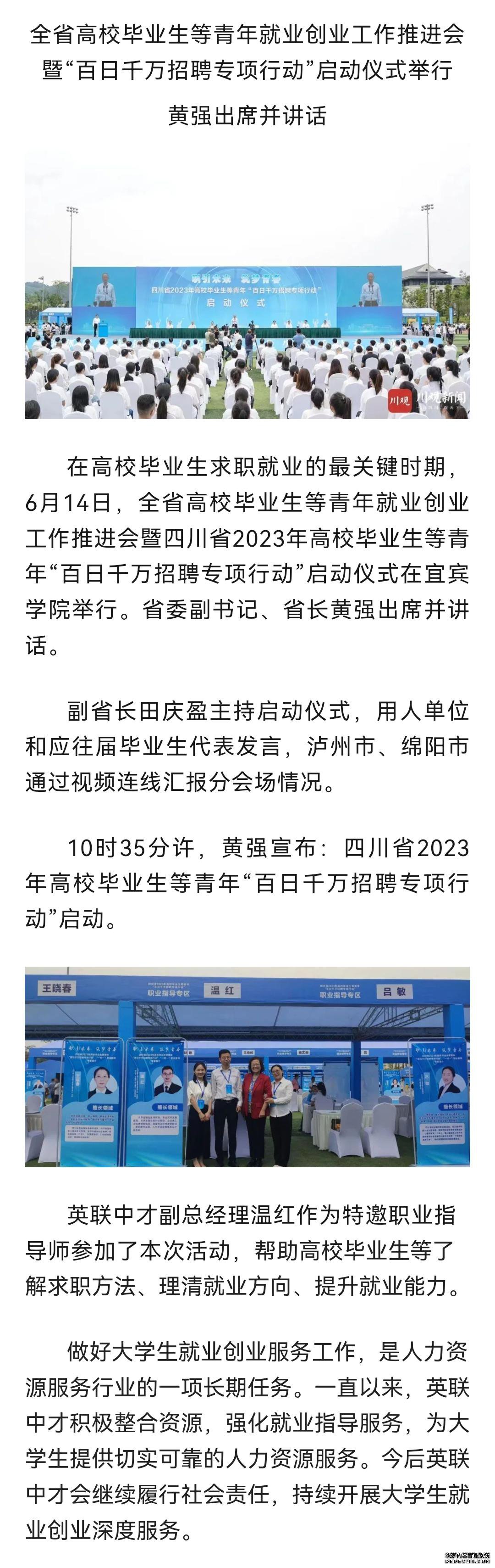 四川省2023年高校毕业生等青年“百日千万招聘专项行动”启动,英联中才温总作为职业指导师参加此次活动